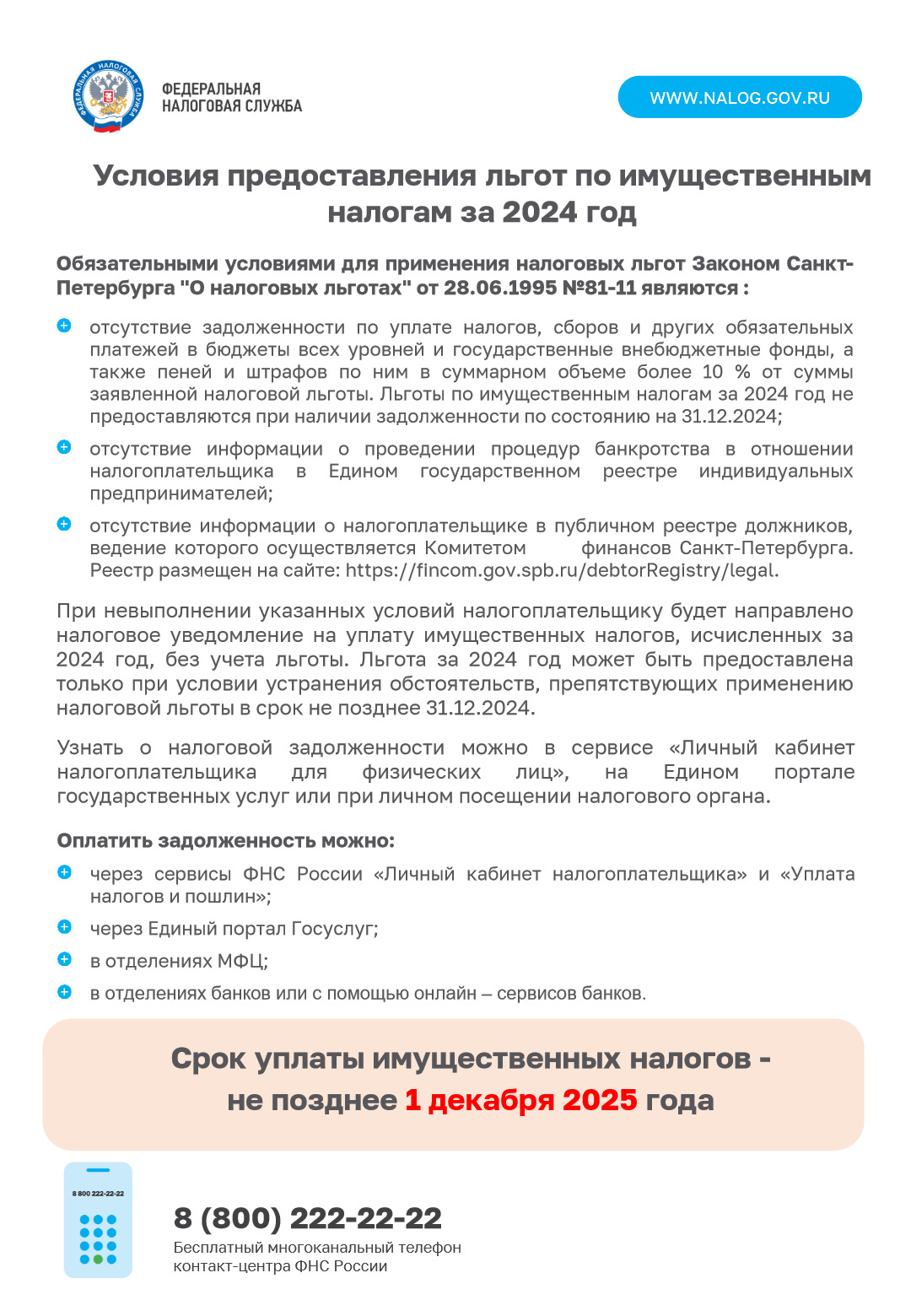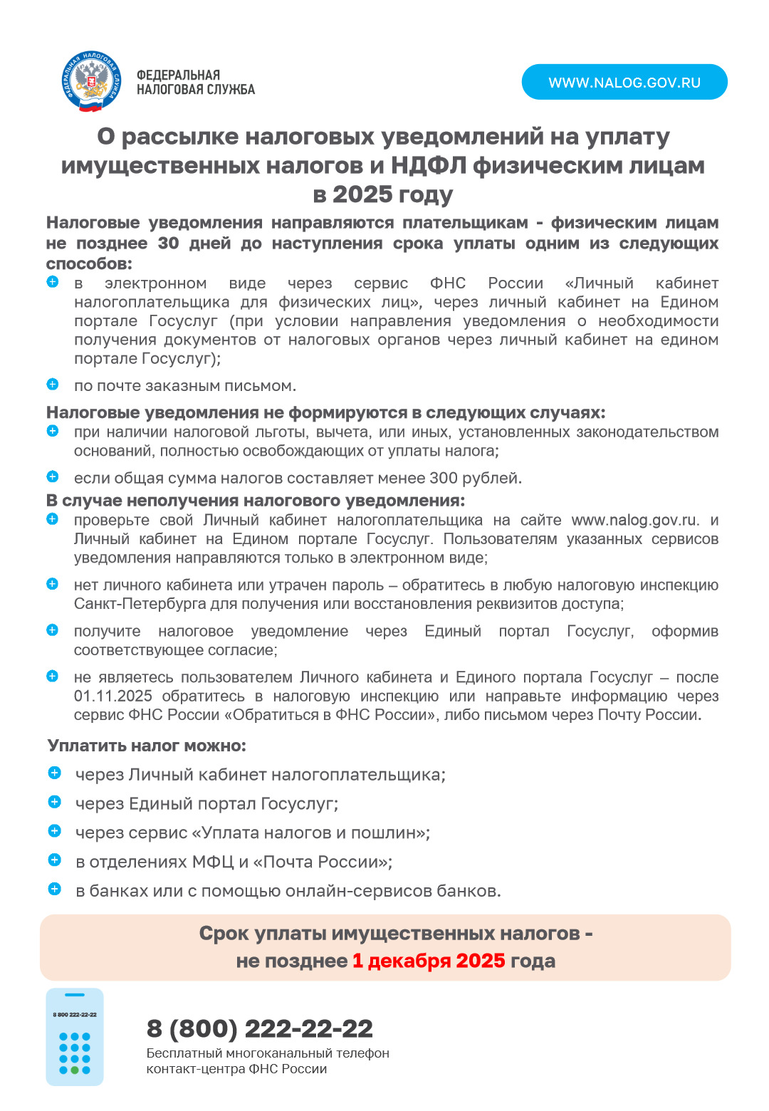 » 1 декабря - срок уплаты налогов физическими лицами